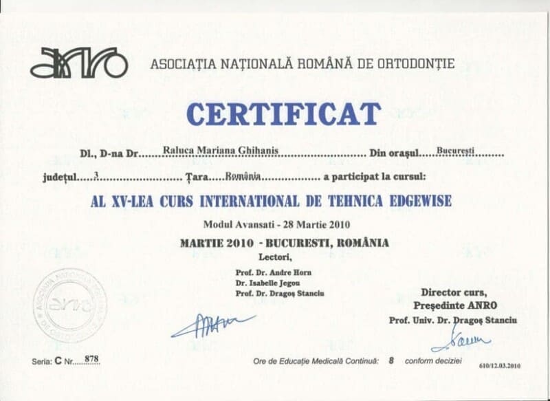 Al XV-lea Curs International de tehnica Edgewise (Dr Andre Horn, Dr Isabelle Jegou)