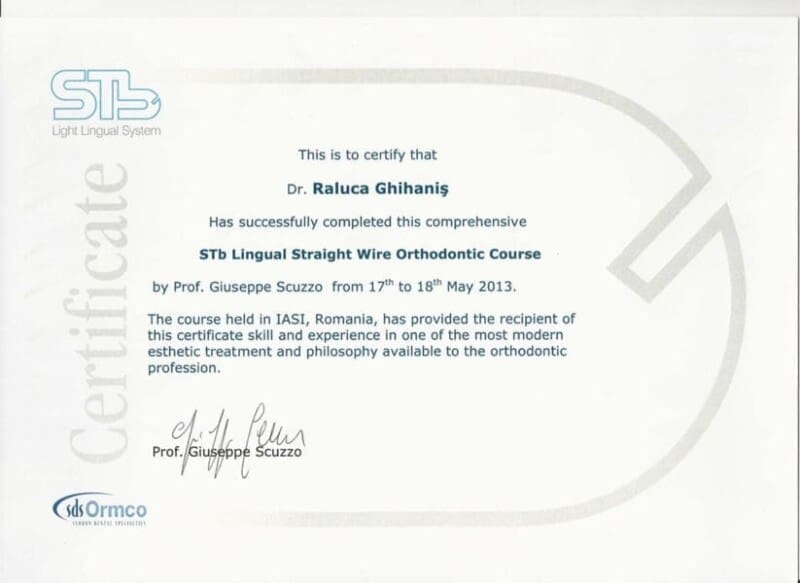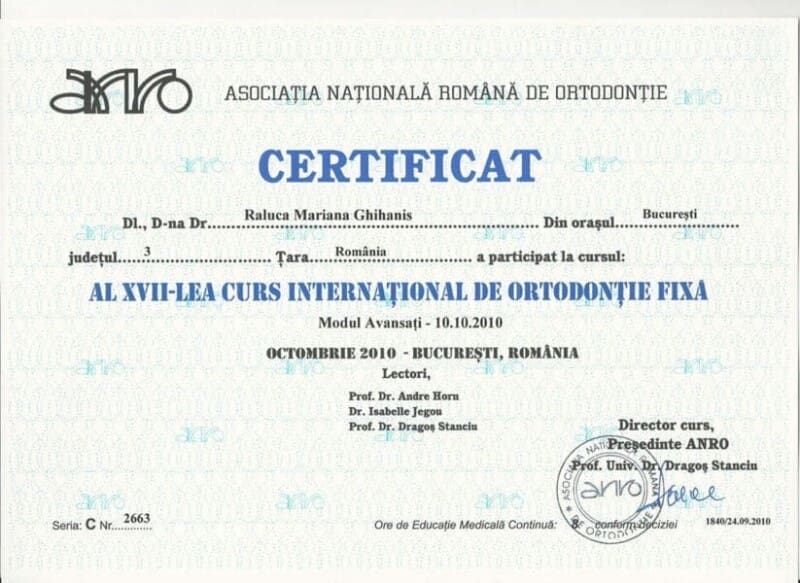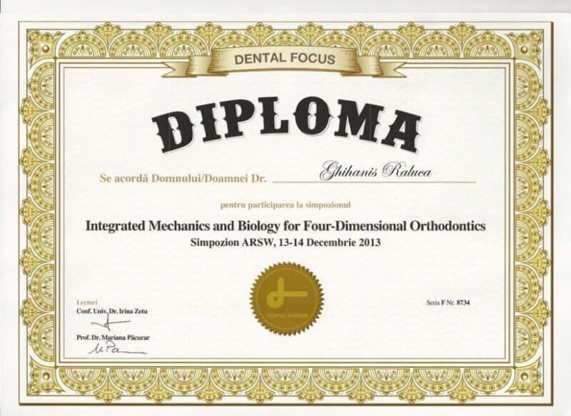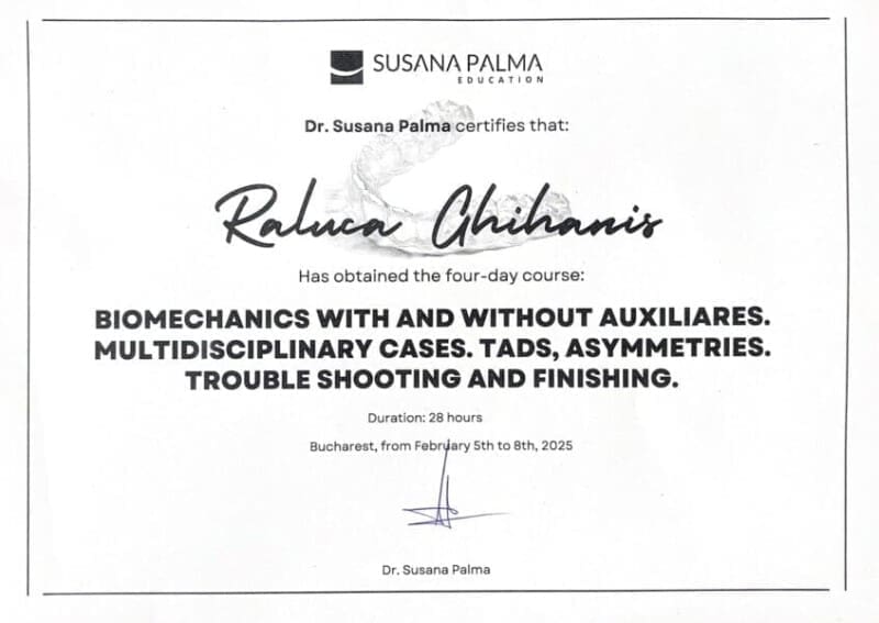 Cu peste 15 ani de experiență și mii de pacienți tratați cu succes, mă dedic tratamentelor ortodontice moderne, combinând tehnologia digitală cu abordări estetice și interdisciplinare. Continuând tradiția familiei și inspirată de cariera tatălui meu, Dr. Corneliu Ghihaniș, stomatolog cu 40 de ani de experiență, mi-am construit drumul în medicină urmând exemplul său de profesionalism și devotament, perfecționându-mi constant abilitățile pentru a oferi tratamente la cele mai înalte standarde.