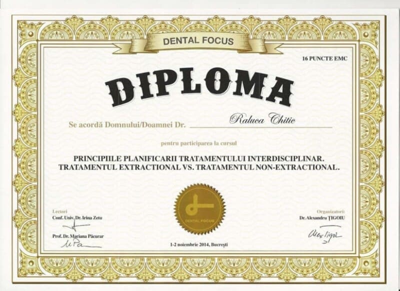 Principiile planificării tratamentului interdisciplinar. Tratamentul extractional vs. tratamentul non-extractional. (Dr Irina Zetu, Dr Mariana Pacurar)