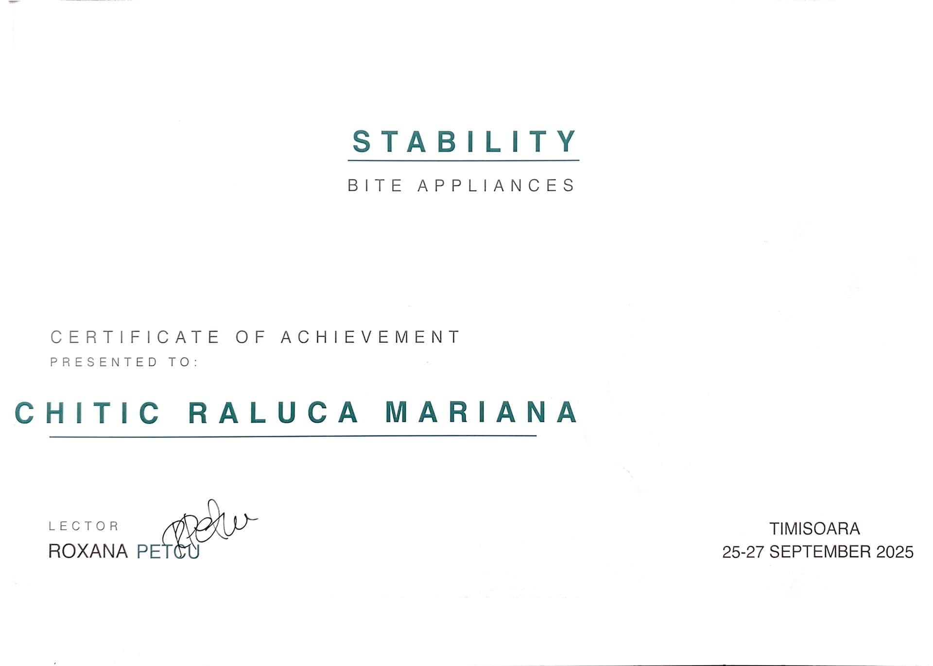 STABILITY – BITE APPLIANCES  (Lector Roxana Petcu)
